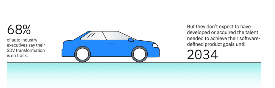 Despite the promising outlook, the transition to SDVs faces significant challenges. Although 68% of executives believe their SDV transitions are on track, 74% acknowledge their organizations are still rooted in a mechanical-driven culture, making the shift to a software-centric approach difficult. The industry also faces a critical skills gap, with the necessary talent not expected to be fully in place until 2034.