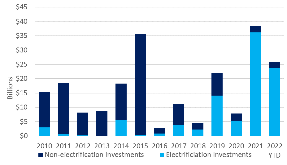 As automakers continue to integrate and localize battery production, the market share of all electrified vehicles (including EVs, hybrids and fuel cell vehicles) ticked up to 12.2% of U.S. light vehicles in the first half of 2022, up from 11.9% in 2021, adding further pressure for automakers to ramp up production. The Biden administration has targeted half of all U.S. new light-duty vehicle sales to be battery-electric and plug-in battery-electric by 2030. That target alone would require roughly 8 million new EV batteries a year1. At the end of 2021, Congress passed the Infrastructure Investment and Jobs Act which provides funding for battery development. As a result, the U.S. Department of Energy recently announced over $3 billion in funding for new and upgraded battery manufacturing to help to bolster domestic battery supply chains2. Currently, the U.S. is mostly dependent on foreign production of critical minerals and lithium-ion batteries, making certain industries such as EV manufacturing vulnerable to disruption.